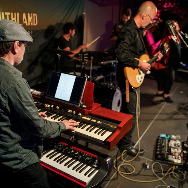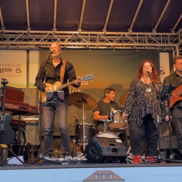 Los geht's um 20 Uhr - Euch erwarten groovende, rockige Songs mit hintergründigen Texten, erdigen Sounds von Gitarre und Keyboards und starken Stimmen.